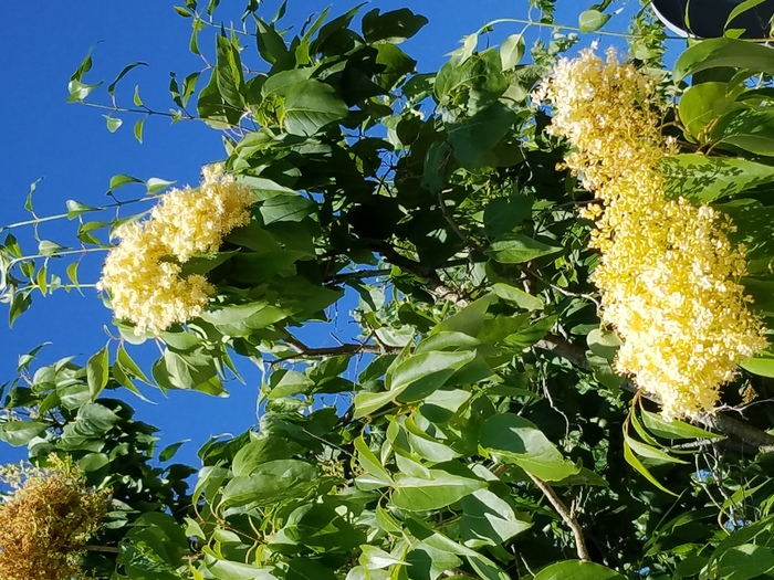 The Syringa reticulata, commonly called Chinese tree lilac or the Japanese Tree Lilac, typically grows as a small tree or large shrub. Japanese tree lilac was introduced into cultivation in 1876. In tree form, it grows to 30’ tall and 20’ wide with an oval-rounded crown. Its best ornamental feature is its showy, fragrant, creamy white flowers which bloom in upright panicles to 12” long in late spring to early summer (later than most other lilac species). Some gardeners dislike the privet-like smell (sweet) of the flowers. Flowers give way to lose clusters of brown capsules that persist into winter. Reddish-brown peeling bark is attractive on younger branches, gradually turning gray with age—Sharply-tipped, lanceolate to ovate, dark green leaves (to 6” long). The tree in the fall can have yellowish colored leaves in some cases to no fall color.